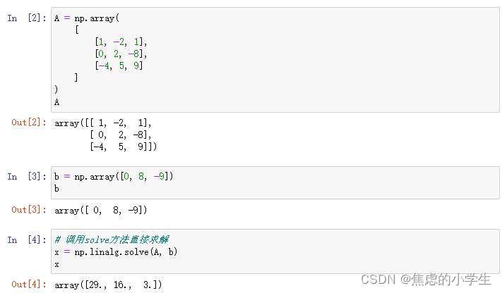十七、Numpy实现逆矩阵求解线性方程组