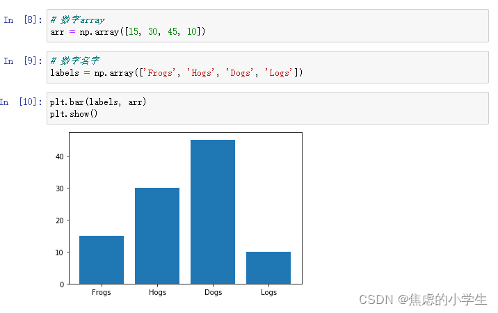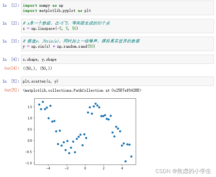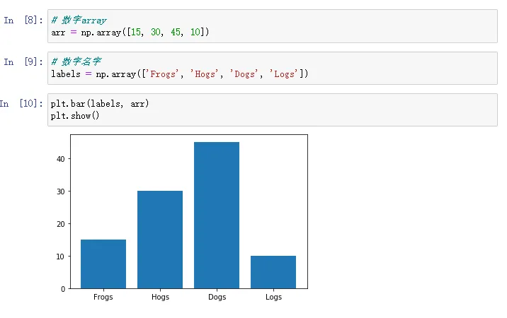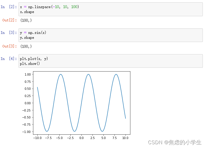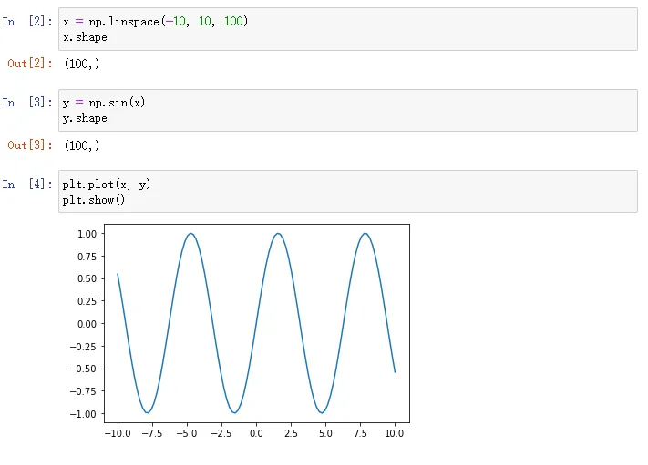 可以直接将Numpy的数组传给Matplotlib实现可视化绘图: