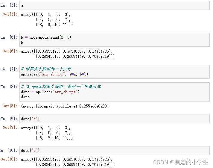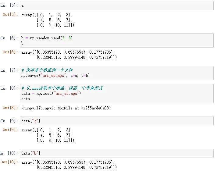 2. 使用np.savez和np.load保存和加载多个数组
