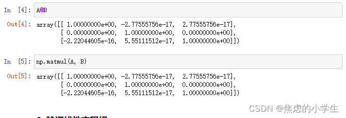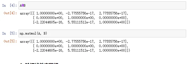 2. 验证矩阵和逆矩阵的乘积是单位矩阵