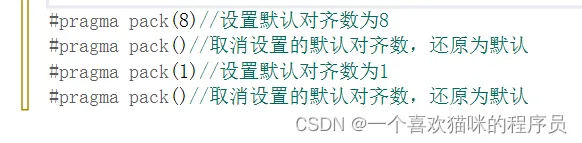 利用#pragma pack(),括号内的写的数字就为设置的默认对齐数值,没有写数字就变为原来的默认对齐数8。