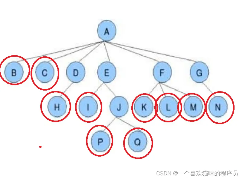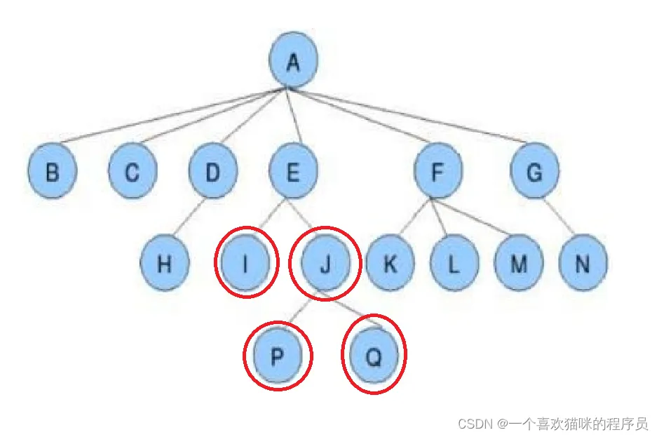 - 叶节点就是就是没有子树的节点,如下图