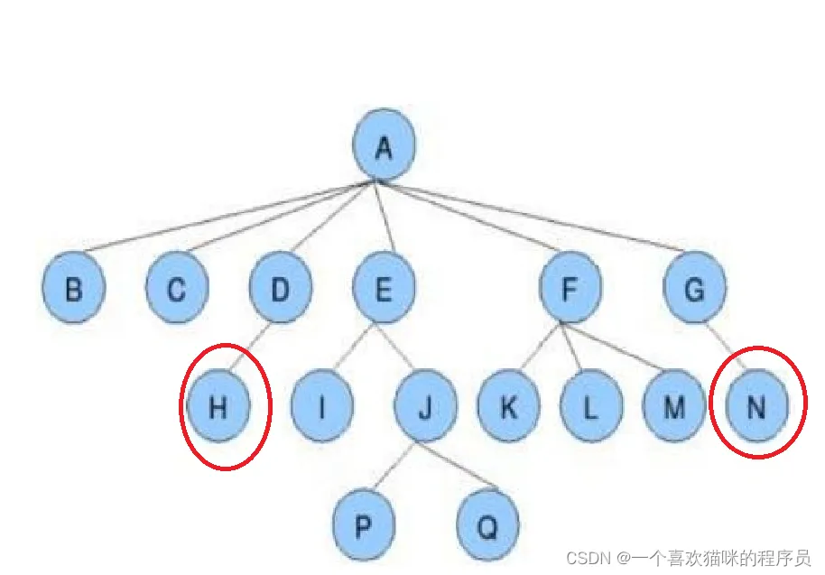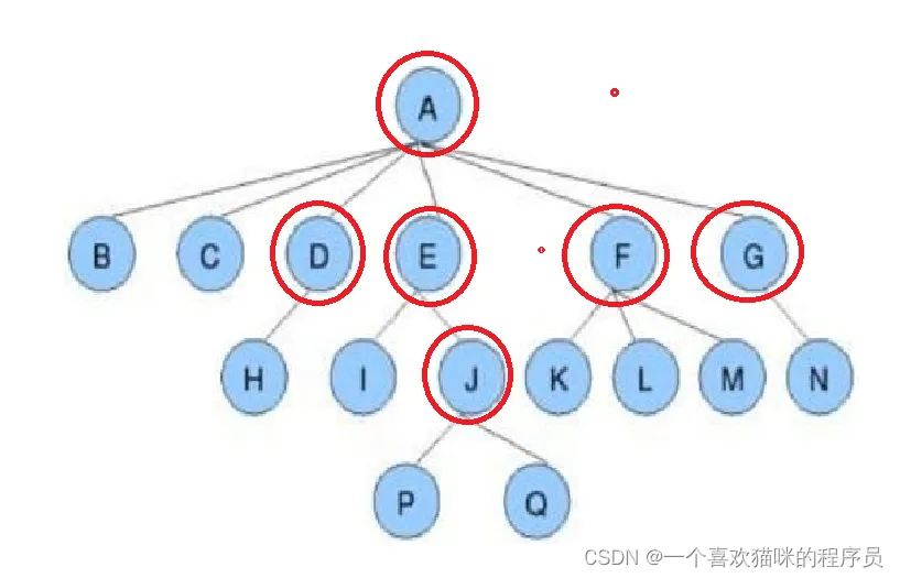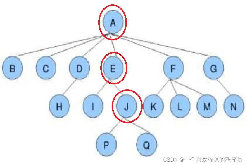- 父节点就是,节点的上一个节点,比如E就是J的父节点。