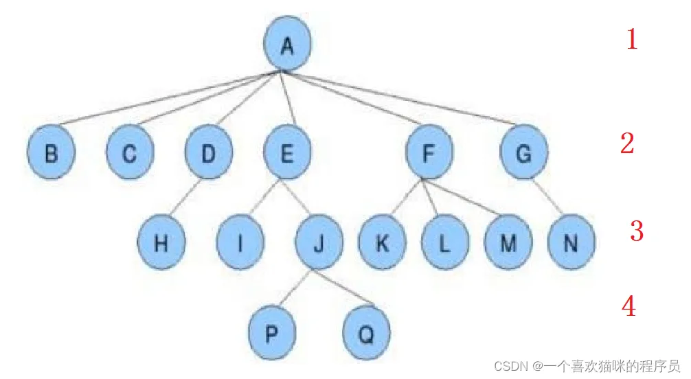 - 节点的层次是这样的,根节点的那一层为1,下一层为2,以此类推。