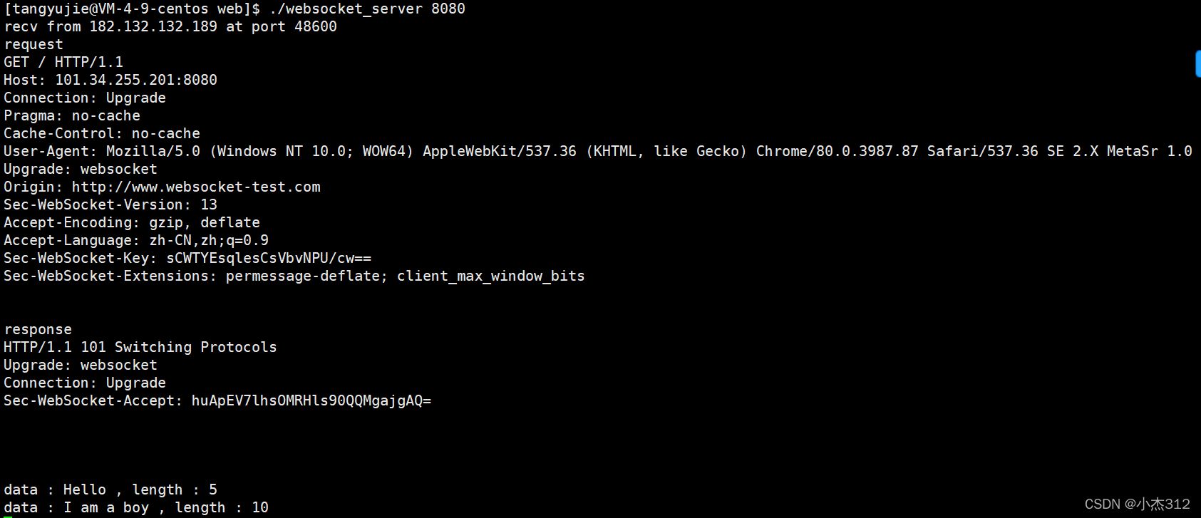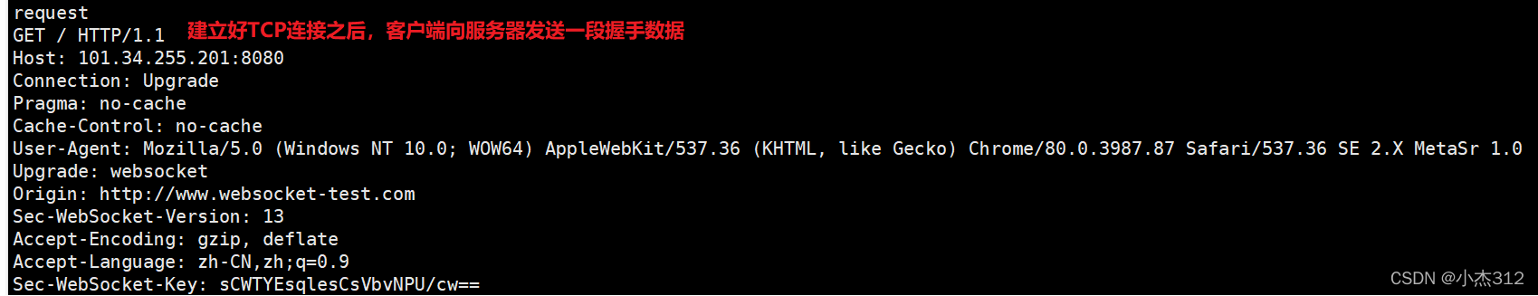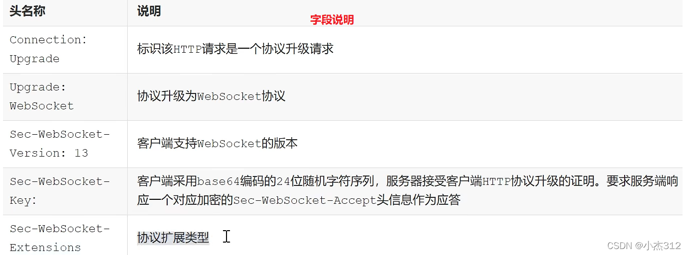 - 注意: 上述框着的升级为websocket其实是告知服务器客户端想要建立的是websocket连接, 你支持吗, 如果服务器支持,在响应报文中也一定存在返回这两个头部字段