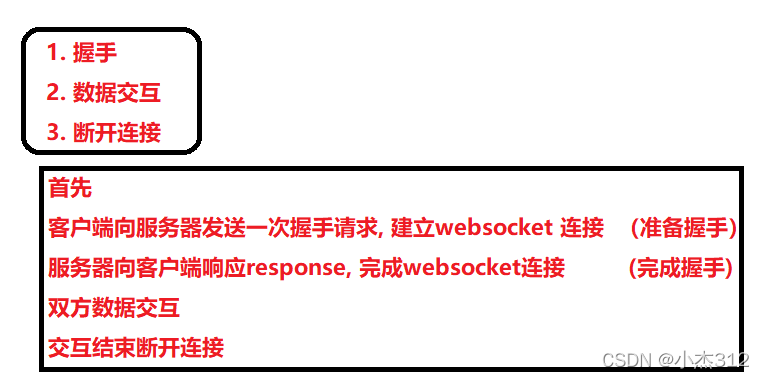 - 握手:确保服务器是支持websocket 协议的, 也就是服务器应答一下客户端, 你的升级请求我收到了,我是支持websocket升级的