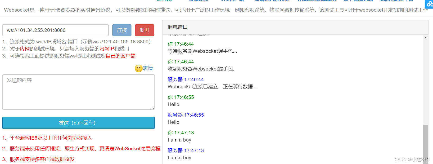- 上述大佬写的前端的websocket实现一个网页聊天室, 而且对于websocket的解释也是相当的优秀, 我的外卖例子均是借鉴它的