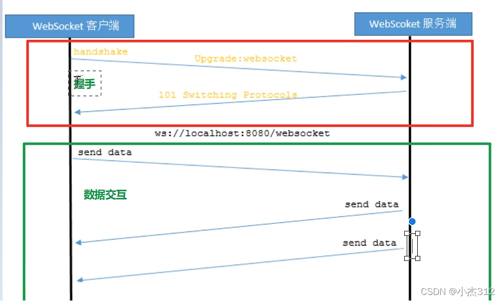 websocket分为 握手和数据交互两大阶段。 握手阶段是基于http升级的.