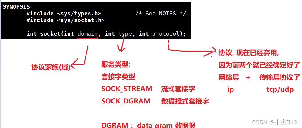 创建socket的细节分析 : IP层 (网络层) : 使用的是IPV4 还是 IPV6, 传输层使用的是 TCP 还是 UDP (本文仅仅研究 TCP) 针对 TCP 我们 使用的是 IPV4 (AF_INET) + TCP (SOCK_STREAM)