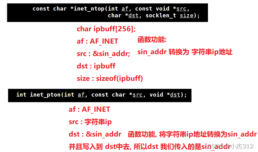 辅助函数: 后序 需要使用 字符串ip地址 和 sin_addr之间的相互转换: