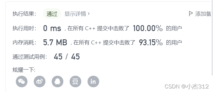 class Solution { public: int minCostClimbingStairs(vector<int>& cost) { int n = cost.size(); int dp[n + 1]; //init dp[0] = 0; dp[1] = 0; for (int i = 2; i <= n; ++i) { dp[i] = min(dp[i - 1] + cost[i - 1], dp[i - 2] + cost[i - 2]); //决策 } return dp[n]; } };