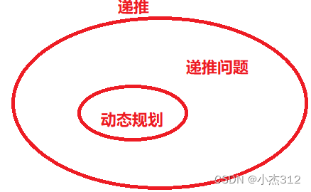正如上图所示那样 : 动态规化一定是递推问题, 但是递推问题不一定是动态规划
