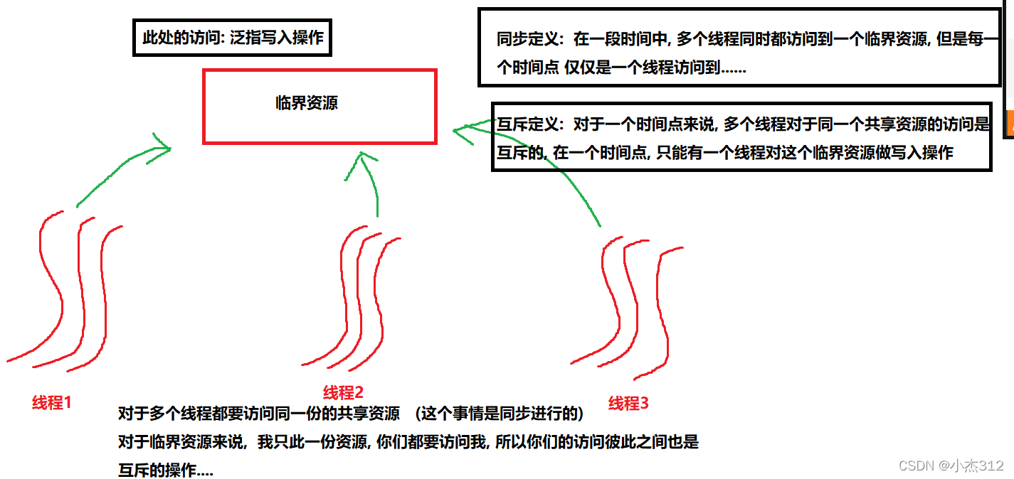 - 此处竟然说到了同步互斥访问临界资源了, 想必特别多的人对于同步 异步, 互斥 这些是分不清的, 此处图解一下: