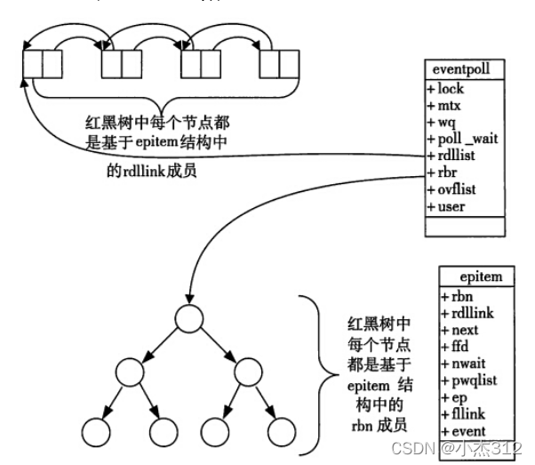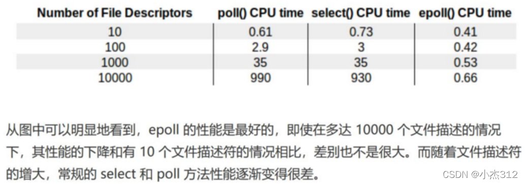 而且内核中监视IO事件使用红黑树存储, 增删改查 的效率都远远的超过了线性结构....select和poll都是使用的线性结构, 遍历轮询IO事件效率低下...