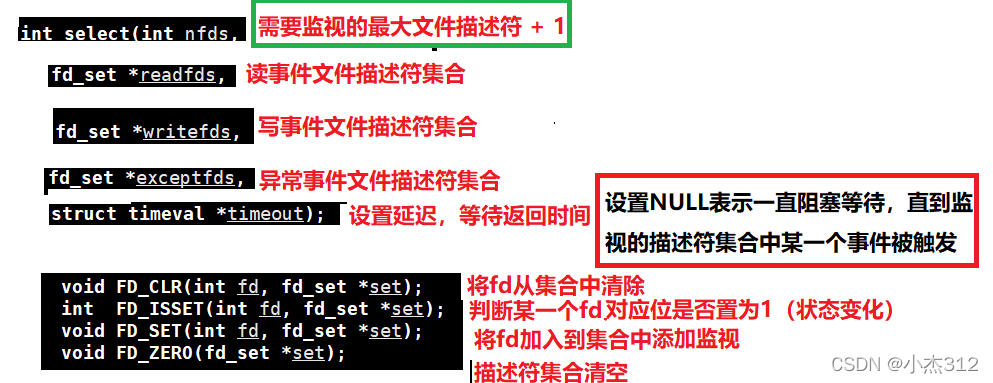原因1 : 每一次调用select之后内核都会对于fds进行一个修改, 所以每一次从新调用select监视之前我们都需要重新向fds中加入所有需要监视的文件描述符, 所以需要一个容器存储需要监视的文件描述符号
