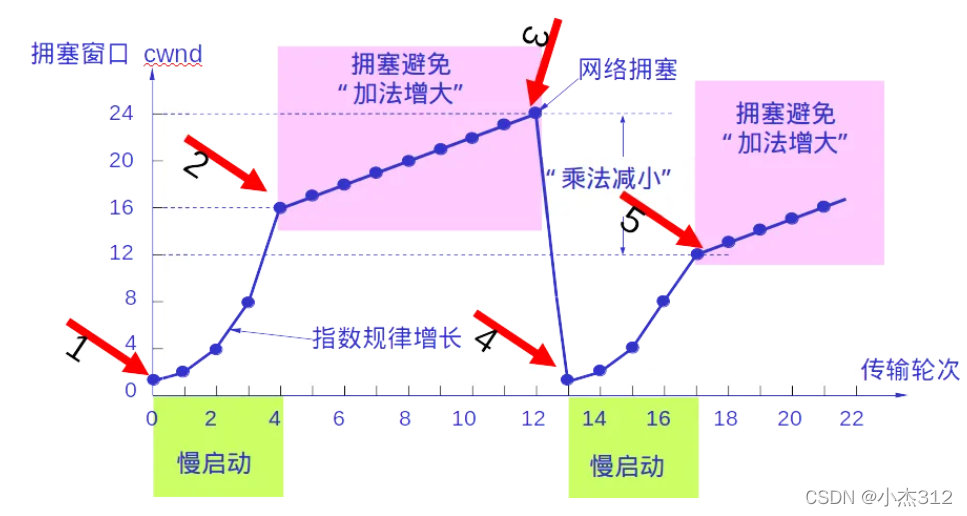 先探测一下当前的网络拥塞程度,然后由小到大的逐渐增大拥塞窗口的大小.