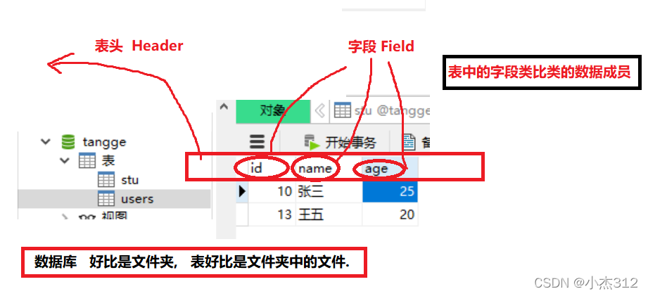 表和数据库关系的理解 : 文件夹和文件的关系.