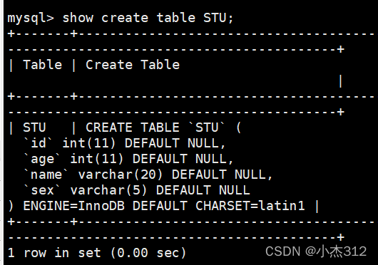 创建表 : create tables 表名(字段1 类型, 字段2 类型, 字段3 类型...) engine=innodb default charset=utf8mb4; //engine后序可省略,