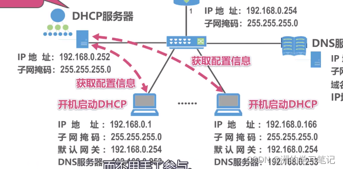 如果网络中的主机数量比较多,那么就容易配置出错。添加DHCP服务器,那么网络中的主机开机之后只需要自动启动DHCP,那么就会向DHCP服务器请求自己的网络配置信息。