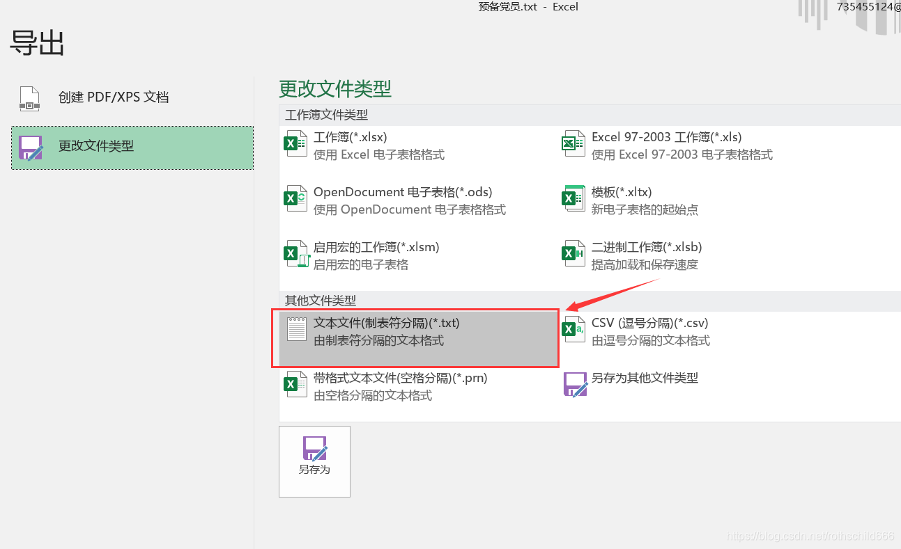 五、接下来选择点击红色箭头指向的红色框中的内容(文本文件)。
