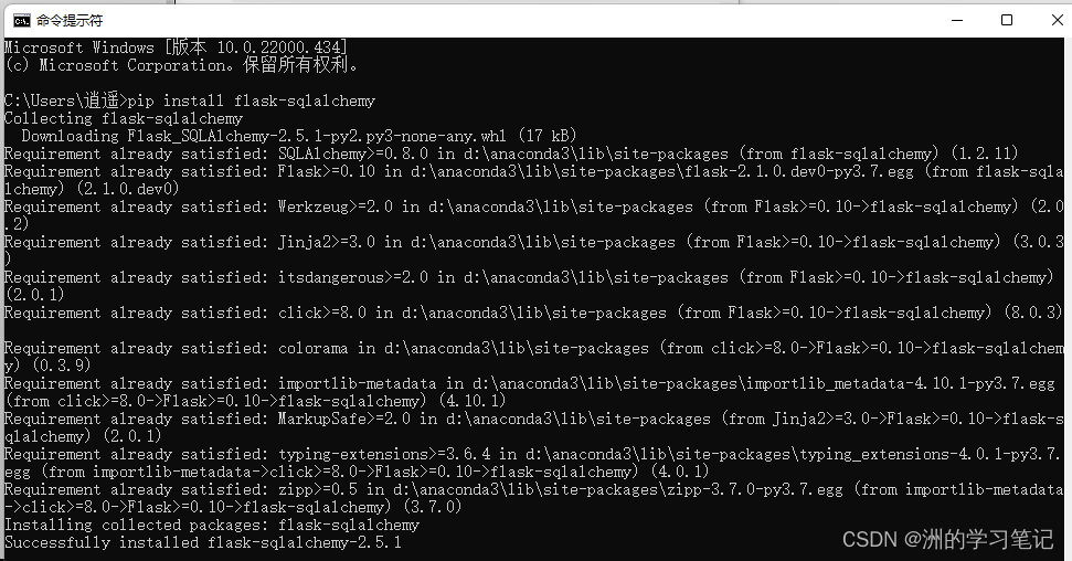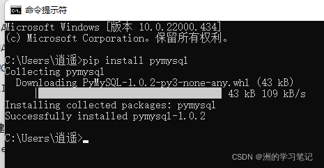 然后再输入命令:pip install pymysql 这个库是用来连接数据库的