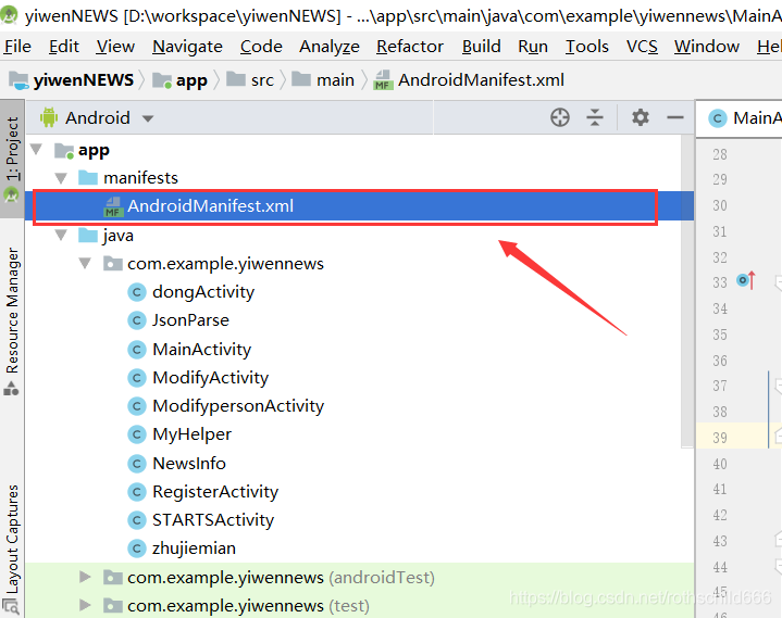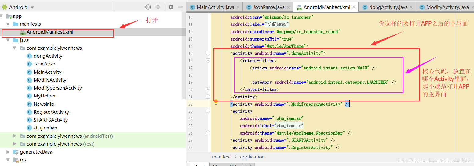 一、打开你要修改的工程中的AndroidManifest.xml文件。
