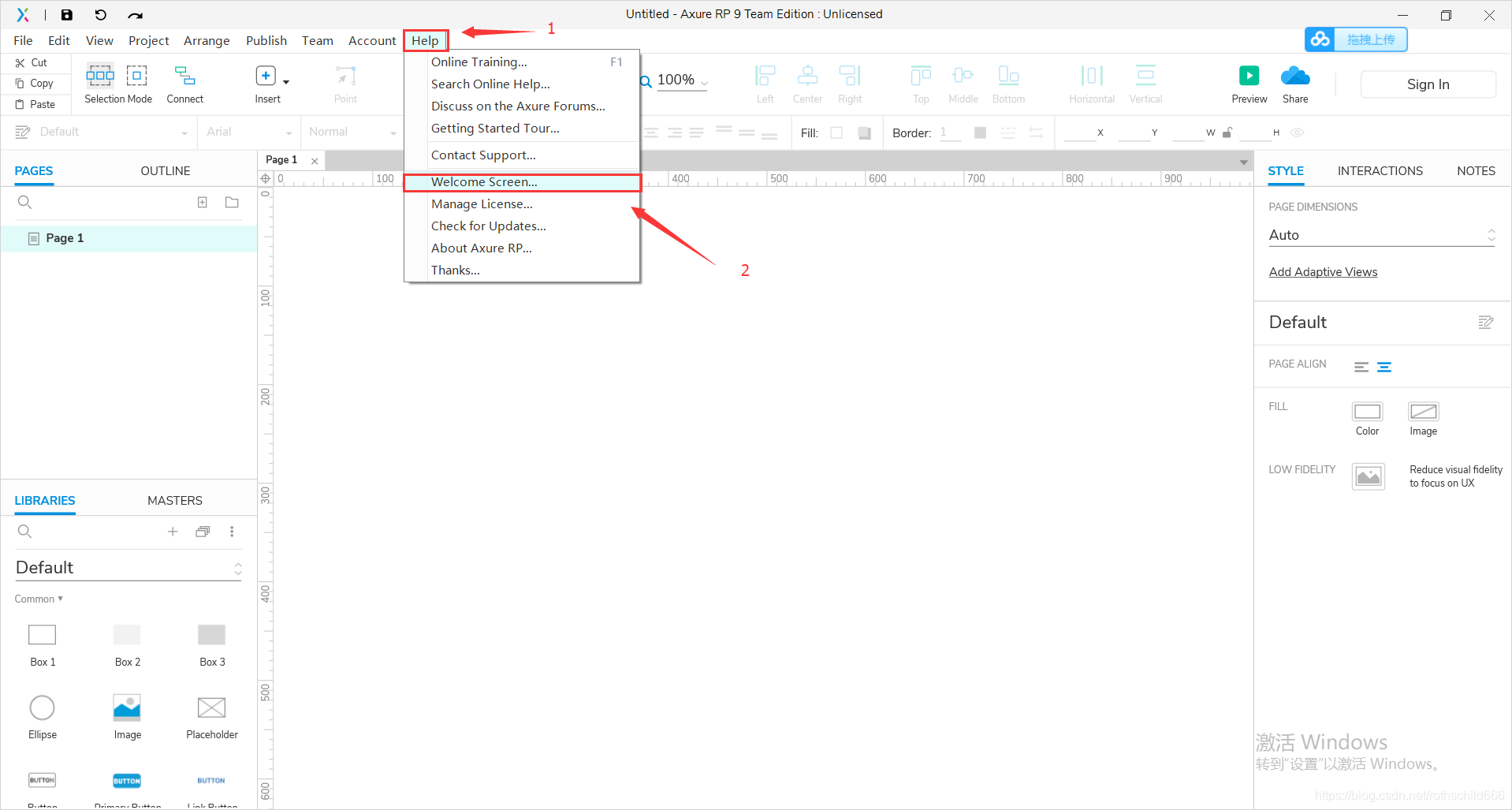 十一、运行软件之后,会出现两个弹框直接叉掉关闭即可,然后先点击“help”,然后再点击“Welcome Screen…”。