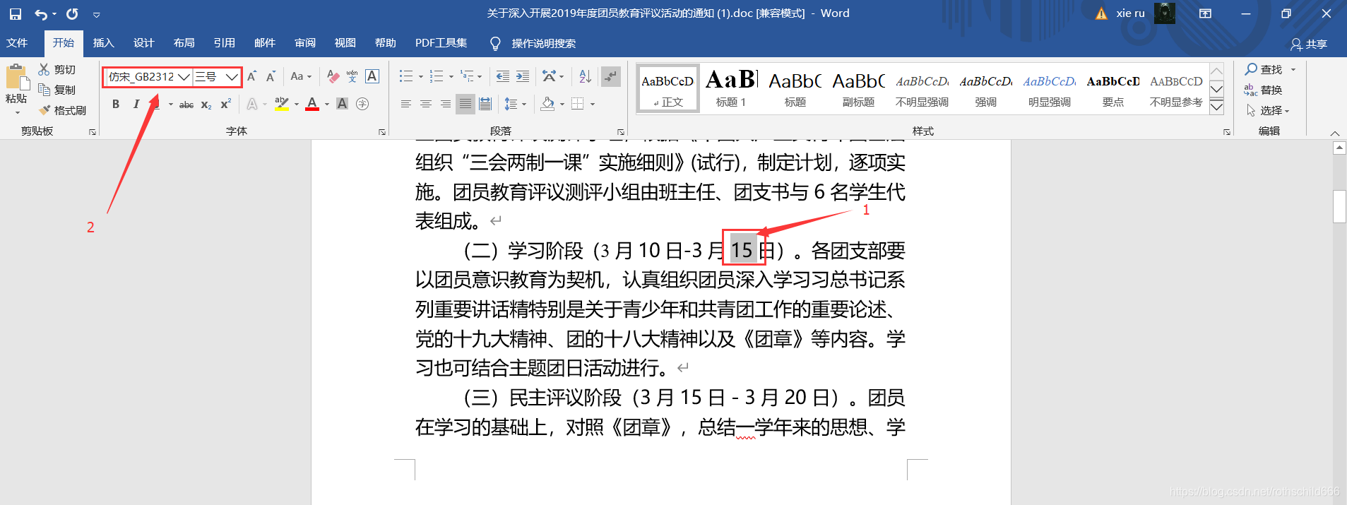 二、在文档中查看数字字体明显不是新罗马字体(Times New Roman),而是其他字体(见红色箭头2指向的红色框内容)。