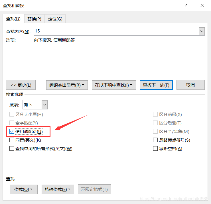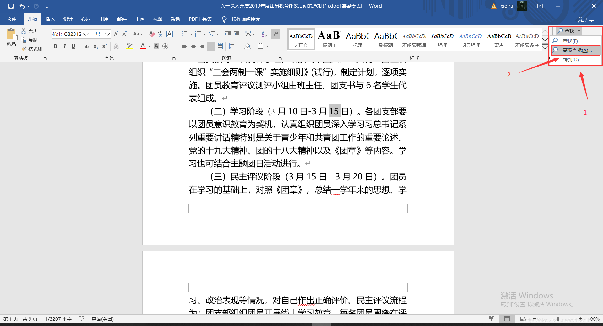 三、在操作栏找到并点击“查找”,然后选择点击“高级查找”。