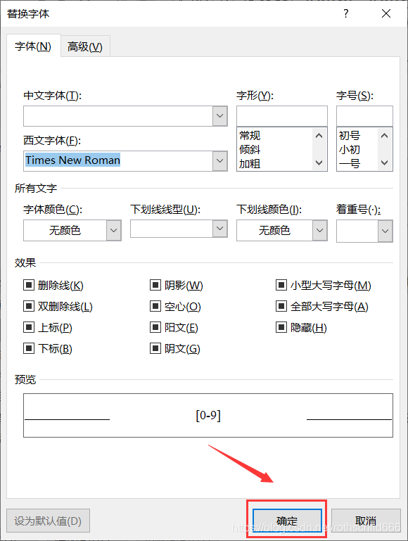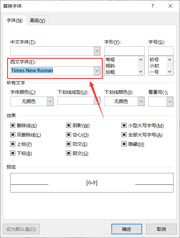八、在“西方字体(F)”中输入“Times New Roman”。