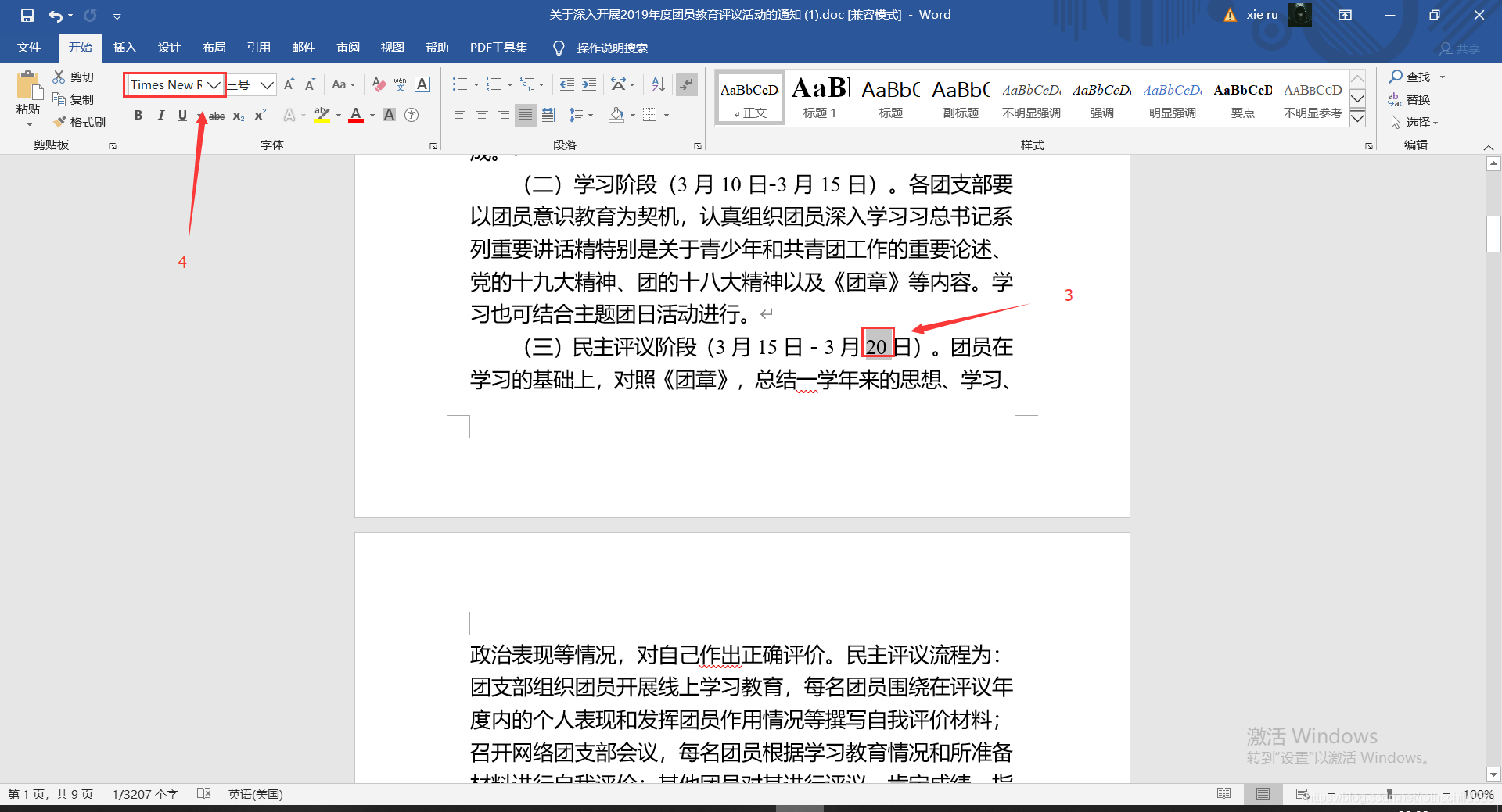 十四、最后,可以查看材料中的所有的数字全部变成新罗马字体(Times New Roman)。