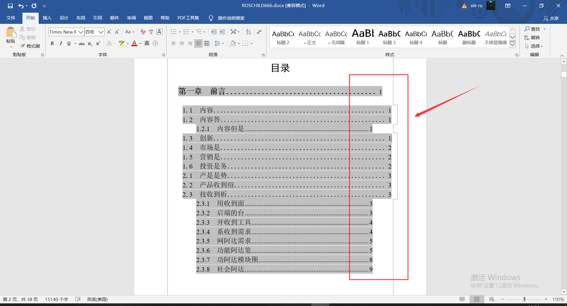 Word文档自动生成的目录,但是由于目录的右边不等(见下图),看起来不美观,所以我们可以将目录右边页面进行等格处理。