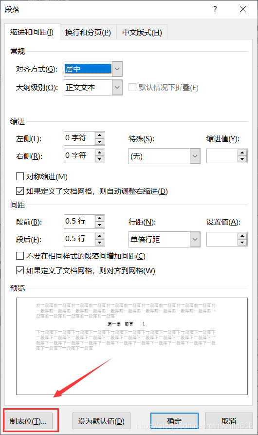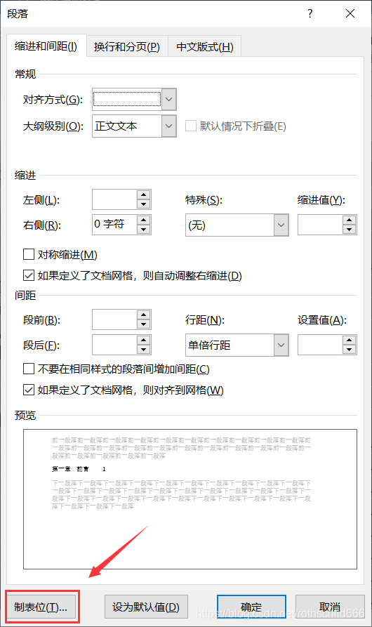 五、点击“制表位(T)”。