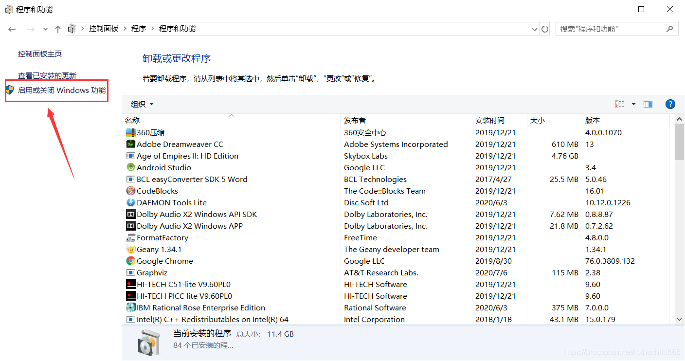 二、点击“应用或关闭Windows功能”。
