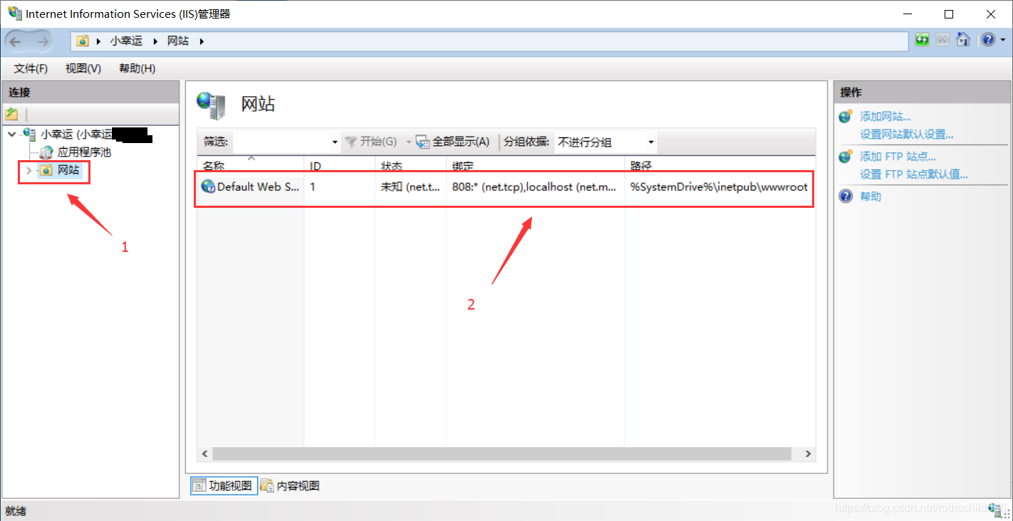 九、打开程序后,找到点击“网站”,再点击红色箭头2指向的红色框内容。