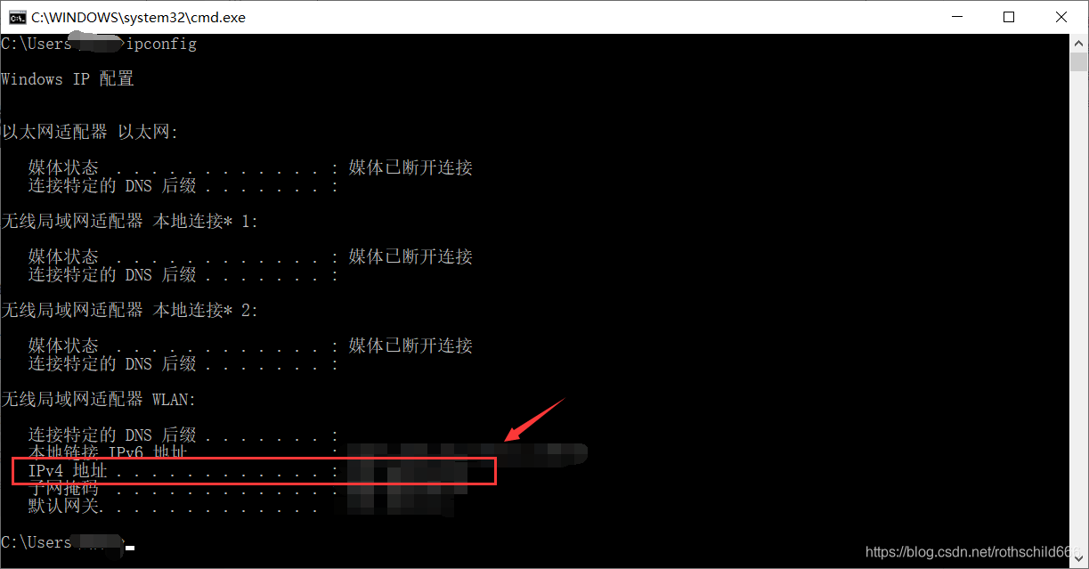 十三、关于上一步的需要填写的IP地址一般填写本机的IP地址,所以需要查找自己电脑的IPV4地址。首先按键“win+R”输入cmd,然后按键回车;输入“ipconfig”,按键回车,然后可以看到IPV4的地址,并且进行复制。