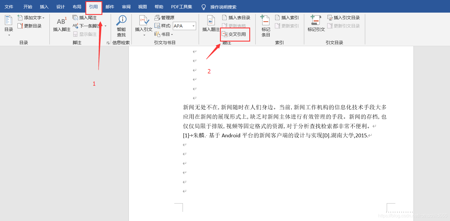 八、接下来点击(引用),然后选择点击(交叉引用)。