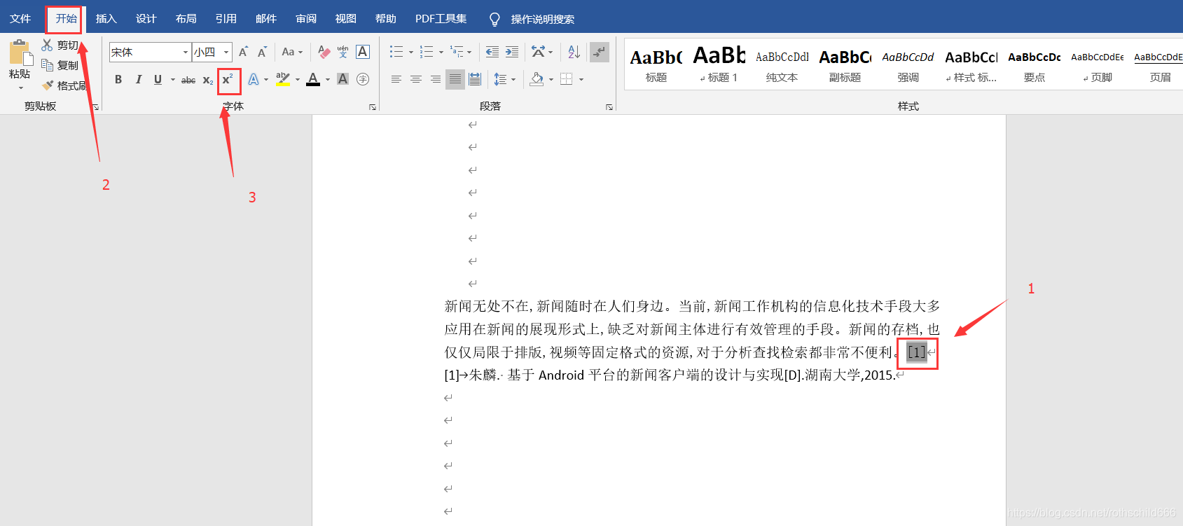 十一、第一步选择之前给论文内容编号的号,然后点击(开始),最后点击(上标)。