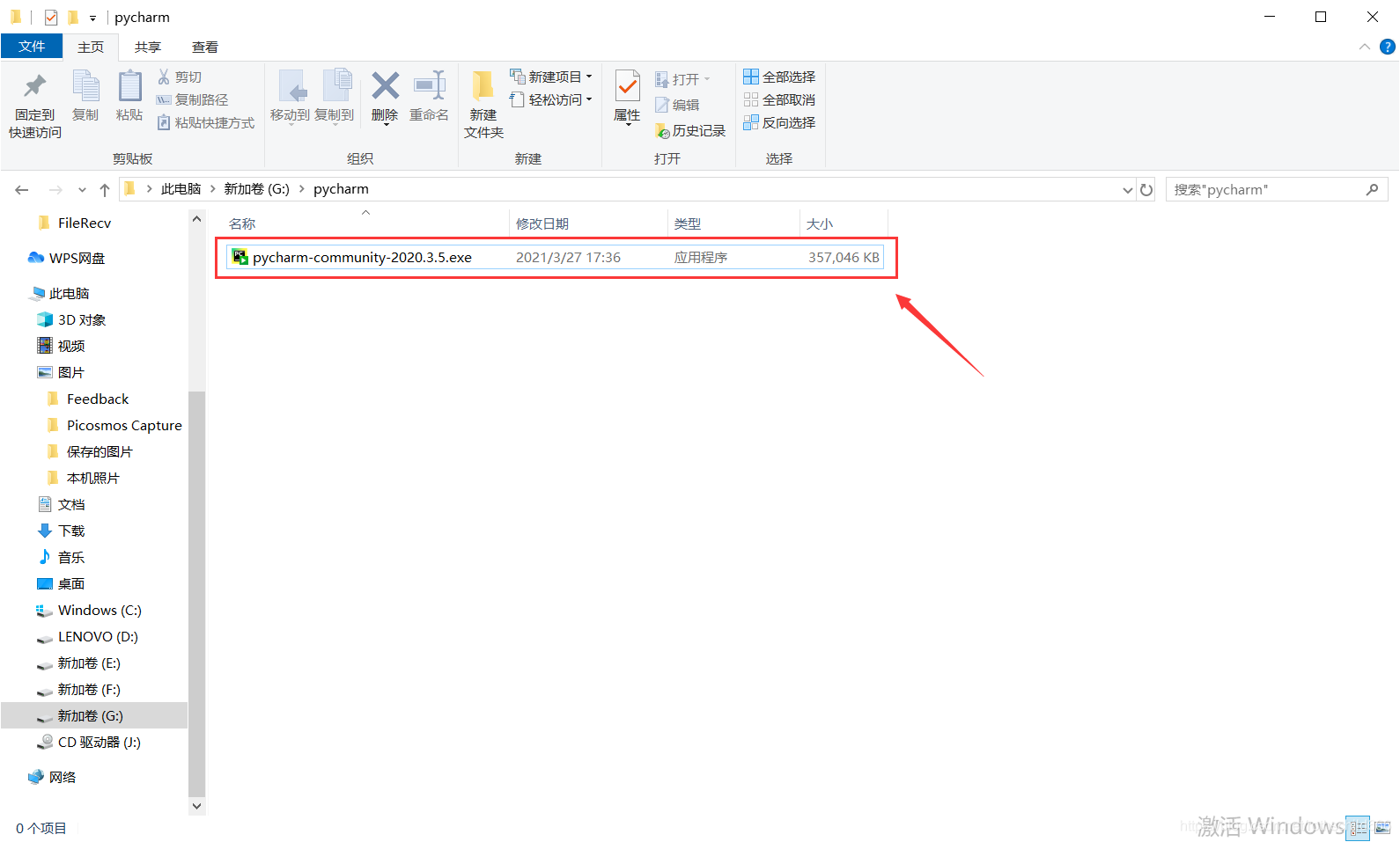 三、双击”pycharm-community-2020.3.5.exe“文件,运行安装程序。