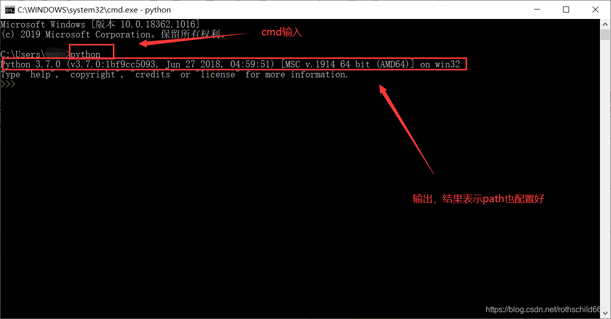 十七、首先你在cmd平台里面输入python看看自己环境是否装好。如果没有出现下面的输出结果,可以选择卸载原python之后,重新打✔下面红色箭头指向的红色框中自动配置path;如果不卸载自己也可以手动配置。