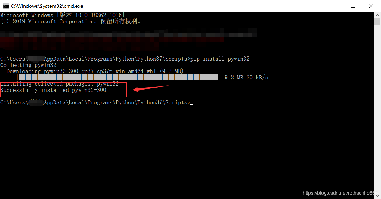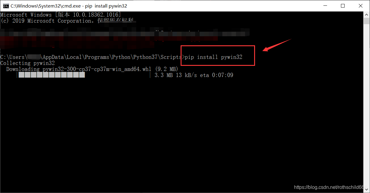 一、复制下面的代码,然后在cmd平台上运行安装pywin32。
