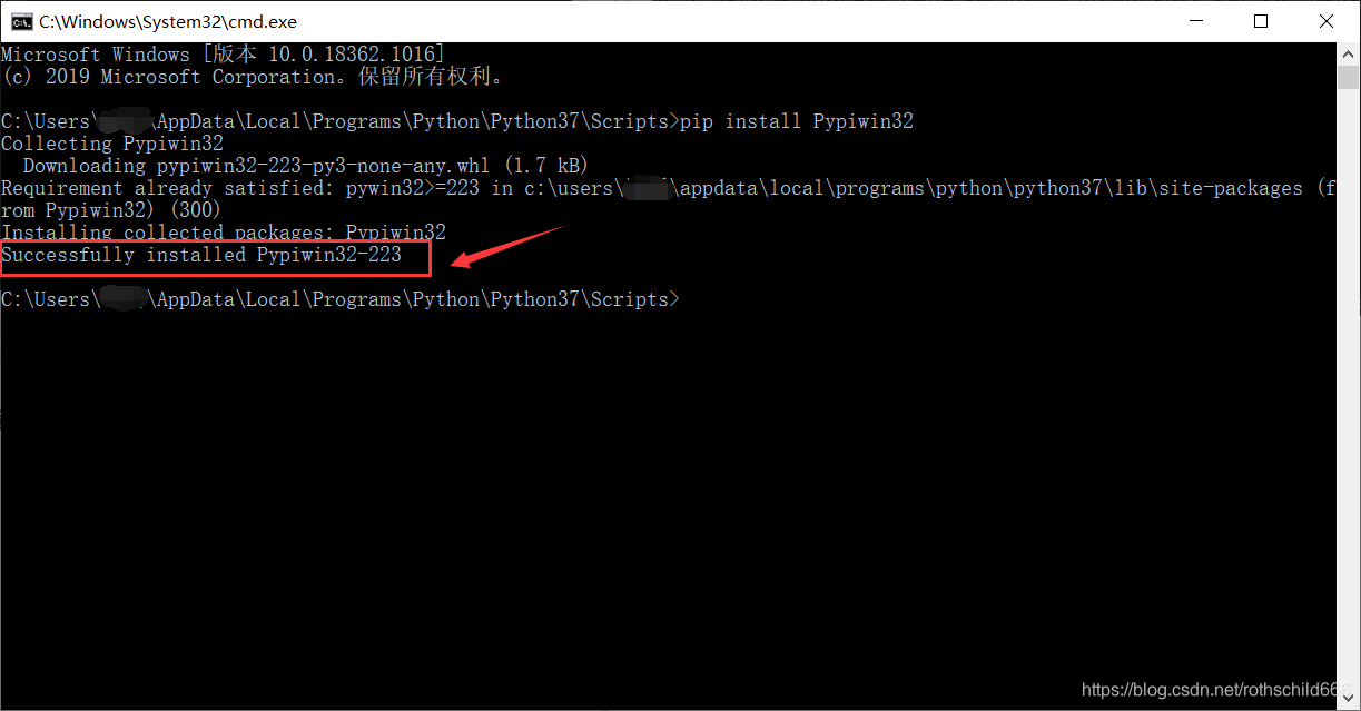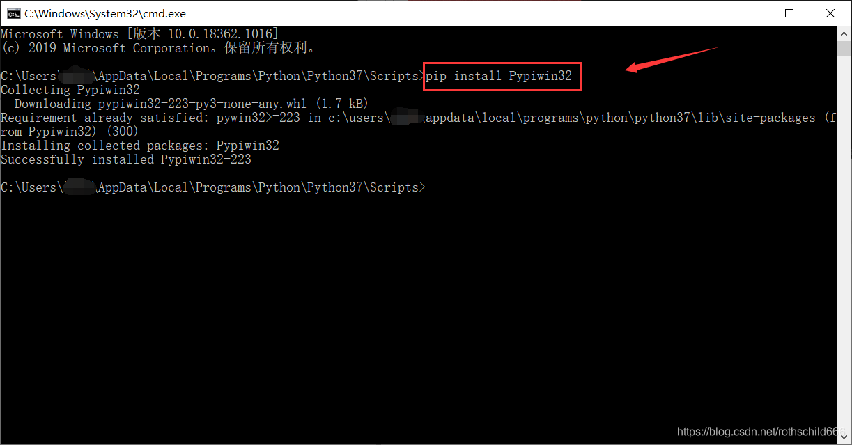 三、复制下面的代码,然后在cmd平台上运行安装Pypiwin32。