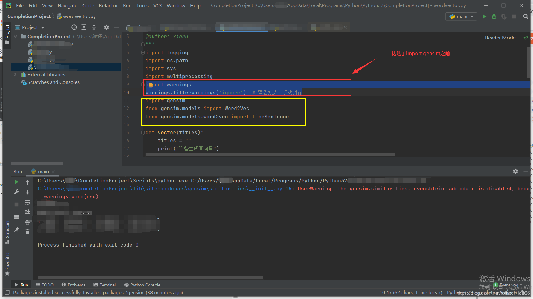 UserWarning: The gensim.similarities.levenshtein submodule is disabled, because the optional Levenshtein package < https://pypi.org/project/python-Levenshtein /> is unavailable. Install Levenhstein (e.g. pip install python-Levenshtein`) to suppress this warning.warnings.warn(msg)警告解决方案