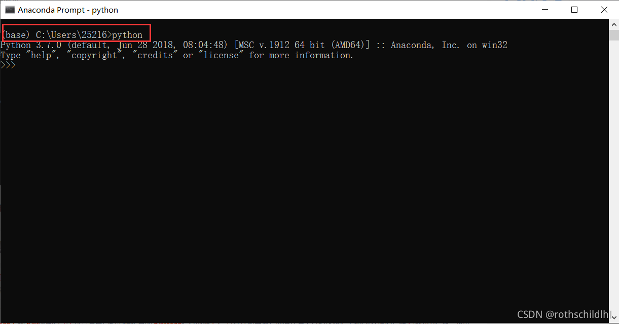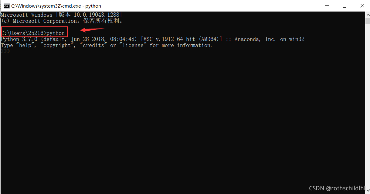 (1)复制命令(注意运行此命令的CMD控制平台会变成python运行环境,所以显示结果之后要重新退出,再重新打开CMD控制平台再进行下一步)