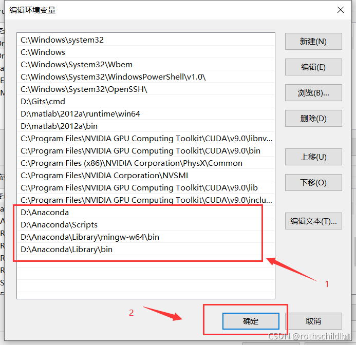 12、配置环境变量PATH,大家根据自己安装Anaconda的路径进行相关文件环境变量配置。