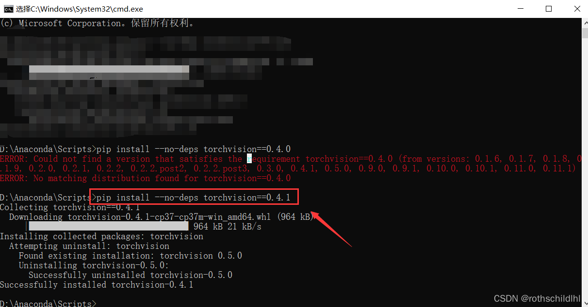 四、发现自己torchvision版本太低,不支持分割模型、检测模型等,所以需要只更新一下torchvision版本。
