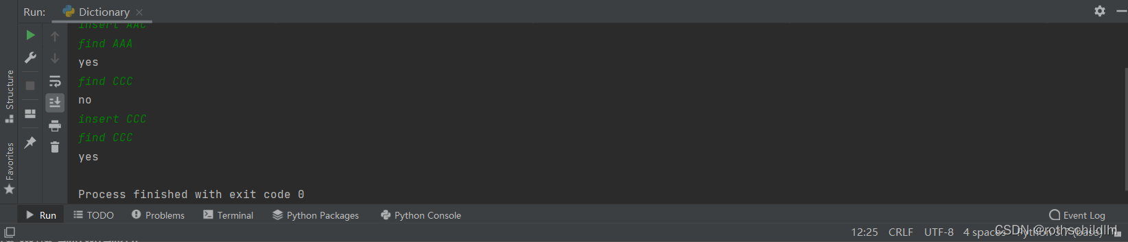 请用python编写一个程序,第一行输入命令行数N,随后N行按顺序输入N个命令,命令格式分为insert(添加元素)和find(寻找匹配元素),使用find命令则进行匹配,匹配成功输出yes,否则输出no,每个输出占一行。