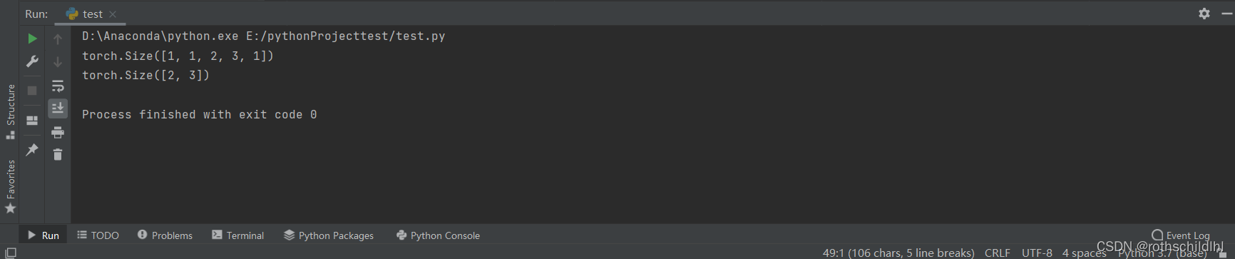 import torch as t a = t.arange(0,6) b = a.view(1,1,2,3,1) print(b.size()) b = t.squeeze(b) # squeeze函数操作,压缩所有维度为“1”的维 print(b.size())