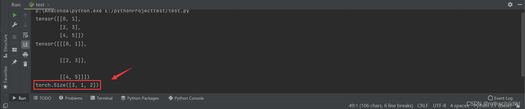 import torch as t a = t.arange(0,6) b = a.view(3,2) print(b) b = t.unsqueeze(b,1) print(b) print(b.size()) # 直接输出显示tensor维度,对应下面图片中的红框部分