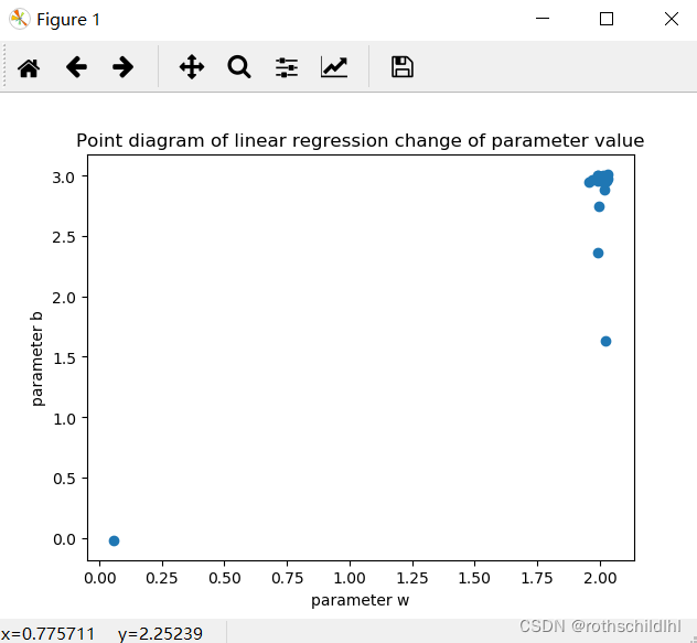 import torch as t from matplotlib import pyplot as plt from IPython import display from torch.autograd import Variable as V t.manual_seed(10) # 设置随机数种子 def get_randn_data(batch_size=8): """产生随机数x并给线性函数y=2x+3加上噪声,便于后面学习能否贴近结果""" x = t.randn(batch_size,1)*20 y = x * 2 + (1 + t.randn(batch_size,1))*3 return x,y # 随机初始化参数w和零初始化参数b,variable格式 w = V(t.randn(1,1),requires_grad=True) b = V(t.zeros(1,1),requires_grad=True) # 设置学习率或者步长 lr = 0.0001 # 创建列表分别存储参数w和b的变化值 listw = [] listb = [] for count in range(20000): # 训练20000次并测试输出 # 训练过程 x,y = get_randn_data() # x,y都是真实数据也就是实际值 x,y = V(x),V(y) # tensor转换成variable # 前向传播,从头往后传到得出预测值,再得出损失函数下损失值 y_p = x.mm(w) + b.expand_as(y) # 实现的就是通过参数w和b和因变量x计算预测值y_p = wx + b loss = 0.5 * (y_p - y) ** 2 # 实现的就是计算损失函数的损失值loss = 1/2(y_p - y) ** 2 loss = loss.sum() # loss为variable格式,所以要计算损失函数的值需要全部加起来得出总和 # 反向传播,自行计算梯度 # loss.backward(t.ones(loss.size())) # 当loss非一维variable时采用 loss.backward() # 相减实现梯度下降,更新参数w和b,因为variable本身不能实现inplace操作,所以要将w和b从variable转换成tensor,data存储是tensor w.data.sub_(lr * w.grad.data) b.data.sub_(lr * b.grad.data) # 梯度清零 w.grad.data.zero_() b.grad.data.zero_() # 测试输出过程 # 每训练1000次输出训练实现预测结果一次,画图(线和散点) if count % 1000 == 0: # 设置画图中横纵坐标的范围 plt.xlim(0,20) plt.ylim(0,45) display.clear_output(wait=True) # 清空并显示实时数据动态表示 # 训练得到的函数模型显示的线性图形 x1 = t.arange(0,20).view(-1,1) # view为-1时会tensor根据元素自动计算维度大小 x1 = x1.float() y1 = x1.mm(w.data) + b.data.expand_as(x1) # 计算需要的是tensor格式而非variable plt.plot(x1.squeeze().numpy(),y1.squeeze().numpy()) # 随机生成的测试数据,用来检验函数模型是否匹配随机测试数据点状图形 x2,y2 = get_randn_data(batch_size=20) plt.scatter(x2.squeeze().numpy(),y2.squeeze().numpy()) # 图像输出并在2秒后自动关闭 plt.show(block=False) plt.pause(2) plt.close() # 输出每次训练后的模型参数w和b的值,也可以看出w和b的变化趋势 # print(w.squeeze().numpy(), b.squeeze().numpy()) # 收集参数w和b每次训练变化的值,实现后面参数值线性回归变化点状图的显示 listw.append((w.data.squeeze().numpy().tolist())) # tensor->numpy->list listb.append((b.data.squeeze().numpy().tolist())) # 参数值线性回归变化点状图的显示 plt.title("Point diagram of linear regression change of parameter value") plt.xlabel("parameter w") plt.ylabel("parameter b") plt.scatter(listw,listb) plt.show(block=False) plt.pause(10) plt.close()